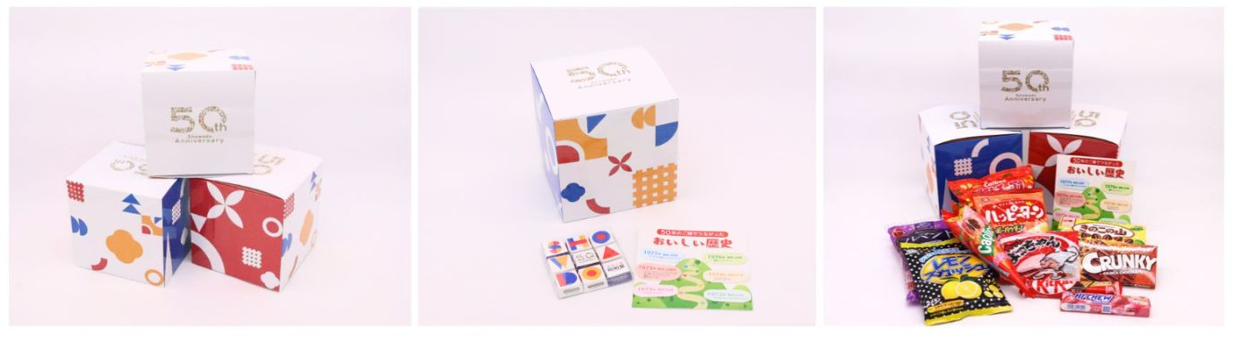 お知らせ 2026.01.19 おかげさまで創立50周年を迎えることが出来ました 弊社は、おかげさまで2025年、創立50周年を迎えることができました。日頃の感謝を込め、お取引先様、社員へ『オリジナルお菓子ボックス』を制作してお贈りしました。今回は、50周年を迎えるタイミングもあり、発売から同じく50年愛されてきた商品などを一箱に。多くの反響を頂きました。 日頃の感謝や周年の記念に。入れる商品やパッケージにも、想いを込めて。 これからも様々なご提案をさせて頂きます。